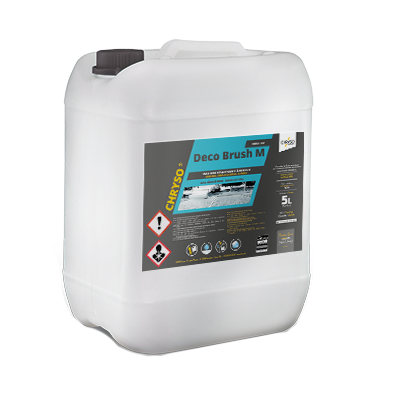 Issue de la Recherche & Développement CHRYSO et objet d’un brevet en cours, CHRYSO®Deco Brush est la première émulsion désactivante à brosser, disponible en 2 forces d’attaque. CHRYSO®Deco Brush permet de retarder l’hydratation du ciment à la surface non coffrée du béton. Au contact du béton frais, l’émulsion forme un film continu et protecteur, résistant à une pluie modérée. Par l’originalité de sa formule, il est possible avec la gamme CHRYSO®Deco Brush d’élargir la fenêtre de brossage jusqu'à 24 heures, en fonction des conditions atmosphériques.